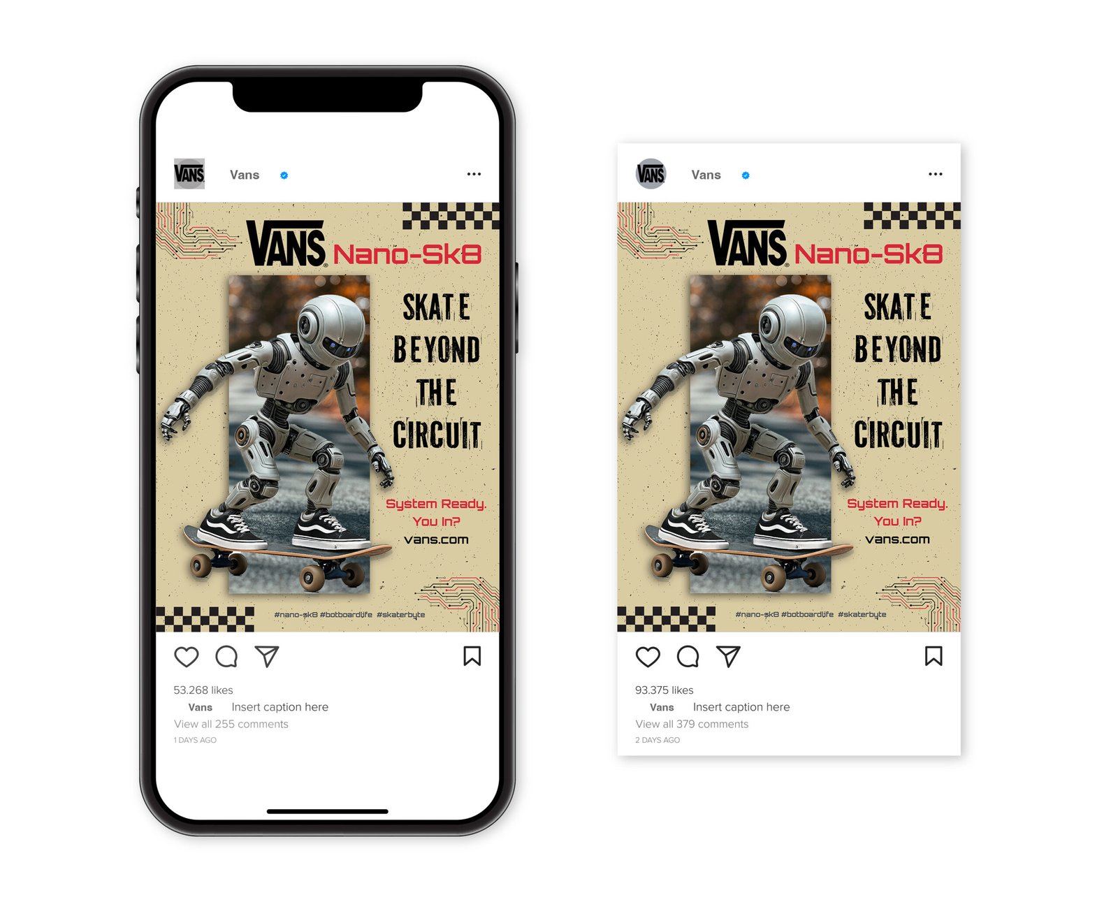 Social media advertising mockup created as part of a speculative Nano-SK8 campaign, adapted for Instagram feed presentation.